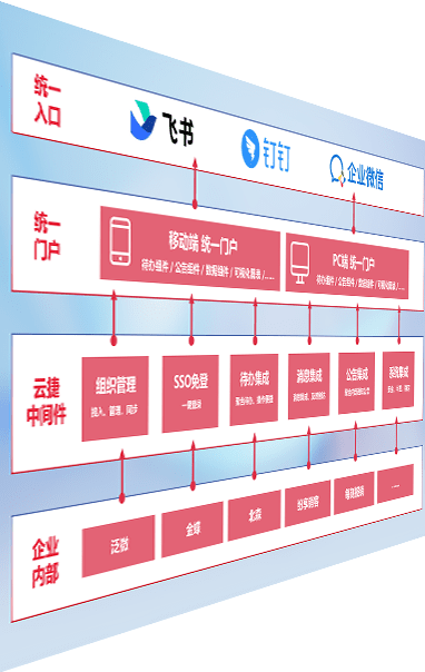 对协作平台提供支持服务,,支持企业应用与协作平台对接,,包含组织同步、、、消息集成、、、、待办集成等。。。。支持目前主流的协作平台:钉钉、、、企微和飞书。。。